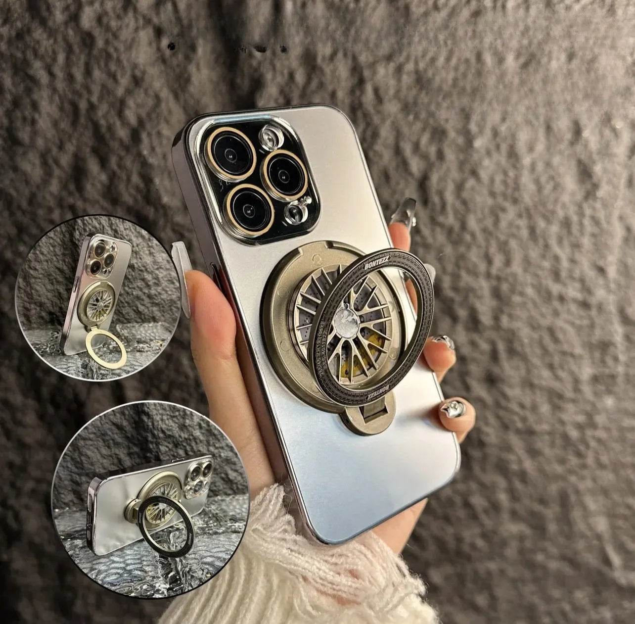 The revolutionary gyroscope magnetic phone case safeguards your phone with its integrated gyroscope technology. Built to protect your device during accidental drops, the case offers a 360-degree rotating feature for easy access to your camera lens.