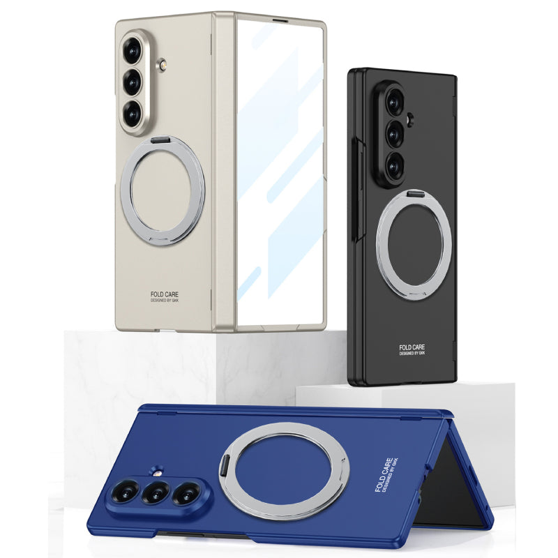 Protect your Samsung Z Fold series with the Magnetic Hinge Fold Phone Case — a premium protective cover designed for ultimate functionality and modern style. This case features a built-in magnetic hinge protection, 360° rotating bracket, and wireless charging compatibility, providing convenience and reliable protection for your foldable device.